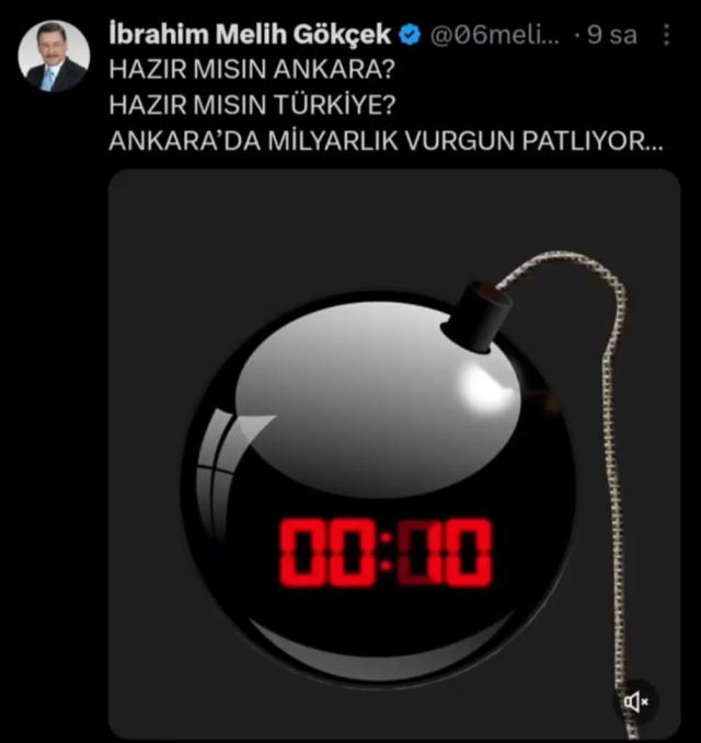 Gökçek, sosyal medyadan saatli bomba ve geri sayım görseliyle yaptığı paylaşımda, “Hazır mısın Ankara? Hazır mısın Türkiye? Ankara’da milyarlık vurgun patlıyor” ifadelerini kullandı. Bu paylaşım üzerine, “Operasyonu önceden mi biliyordu?” soruları gündeme geldi.